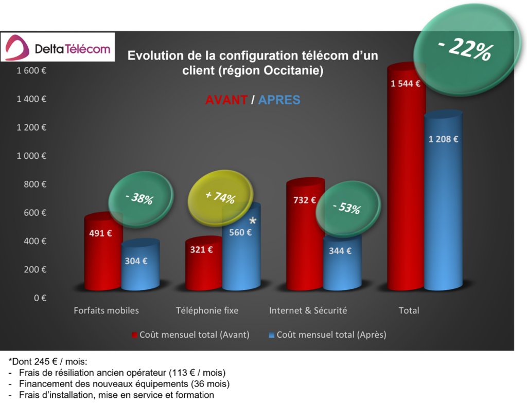 En combinant audit, simplification contractuelle et solutions adaptées aux usages réels. Nous avons permis à ce client de retrouver de la souplesse, d’améliorer la qualité de service et de réduire ses coûts de 22 %.